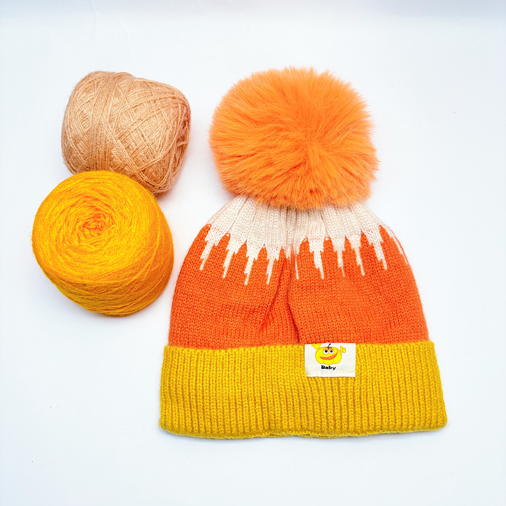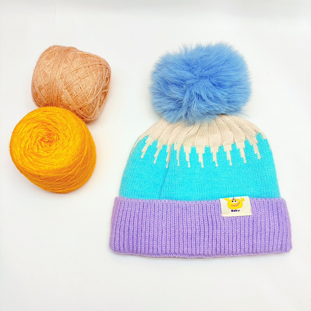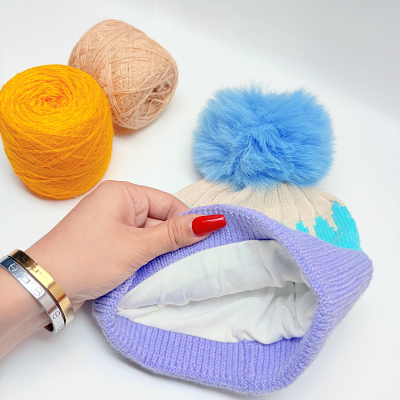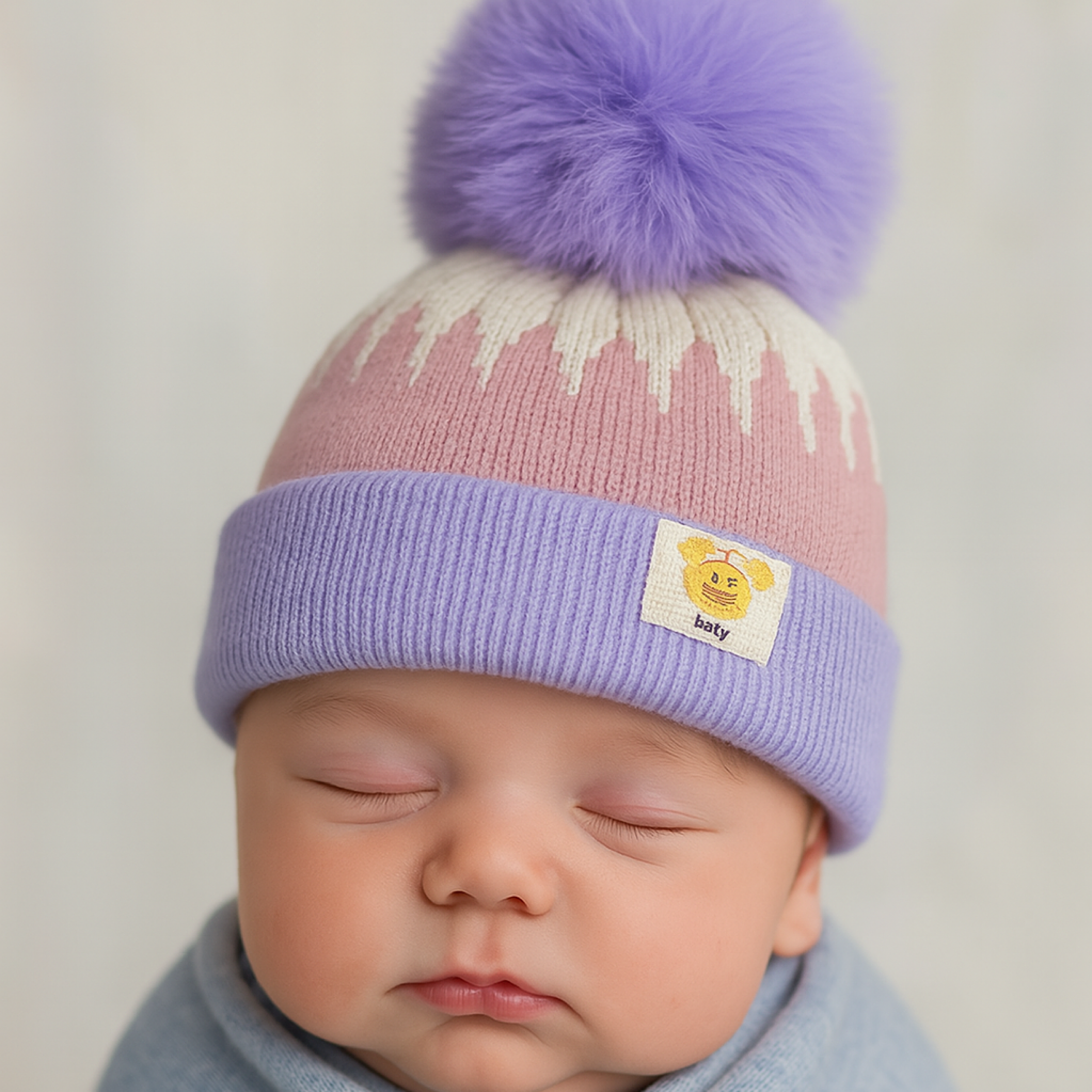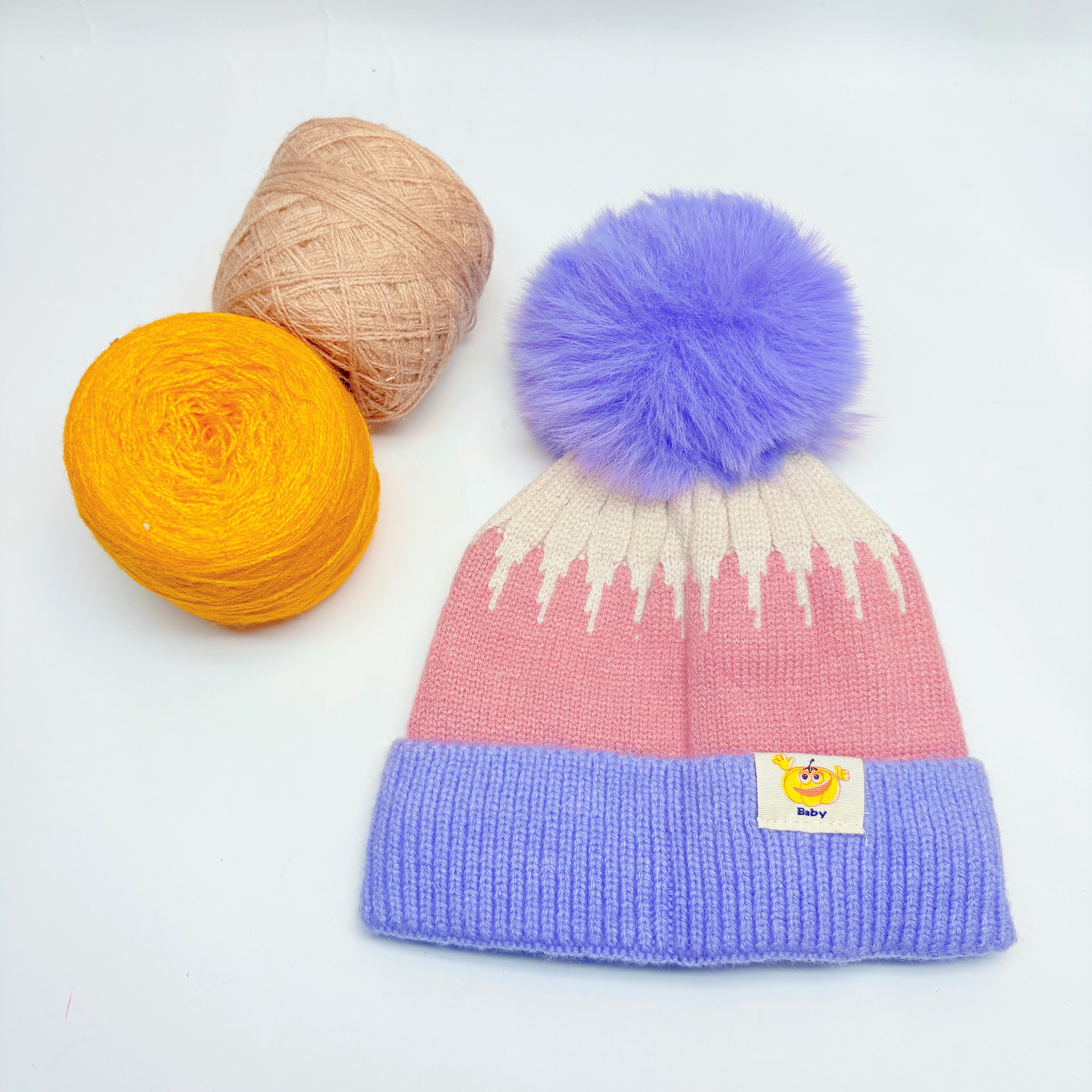 🌟 کلاه بچگانه بافته و پوم دار 🌟
